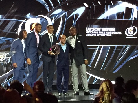 Jayson Tatum and Sydney McLaughlin took home the hardware last night as they were named Gatorade Male and Female Athletes of the Year for 2016. We were on hand at the L.A. Hotel in downtown Los Angeles for the festivities hosted by ESPN’s Sage Steele.
